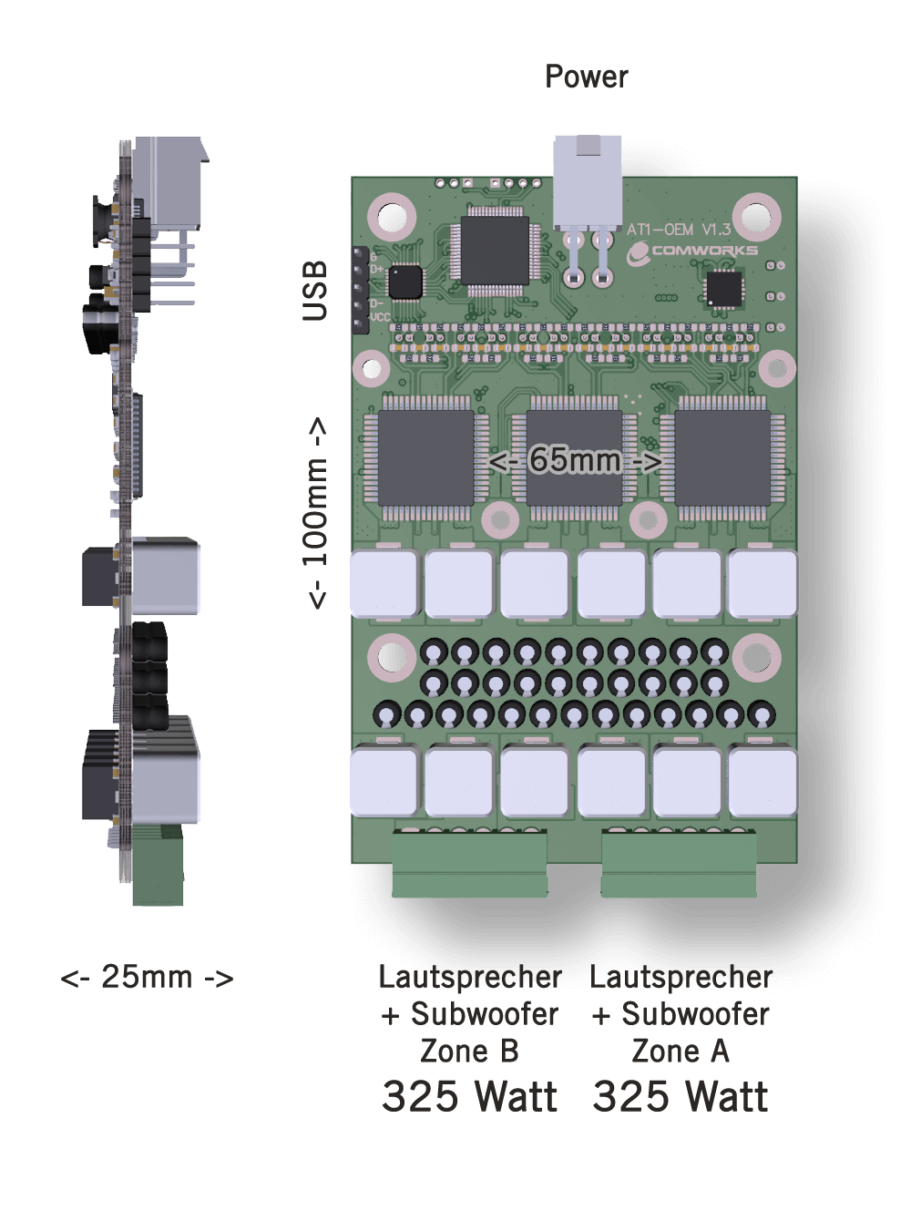 Natürlich fragen sich viele Menschen zurecht, wie es möglich sein soll, dass wir Technologie auf einer Größe platzieren -deren Grundmaße kleiner sind als die einer Audio CD- wo andere Hersteller Schuhkarton-große Geräte anbieten. Zunächst sei zu erwähnen, dass wir ursprünglich nie ein eigenes Audiosystem entwickeln wollten, jedoch mussten wir feststellen, dass der Markt keine zufriedenstellende Lösung bietet. Entweder war die ausgegebene Tonqualität nicht ausreichend hoch, oder die Ausgangsleistung entsprach nicht unseren Vorstellungen, die Geräte waren viel zu groß, nicht mobil einsetzbar und zu teuer. Weitere Probleme waren Störgeräusche, gerade im mobilen Umfeld, z. B. im Einsatz bei Fahrzeugen. Erschwerend hinzu kommt oftmals ein kompliziertes Einrichtungsszenario. Vermutlich aber -das wird es wohl sein- kommen wir einfach viel zu sehr aus der Praxis um zu wissen was wirklich wichtig ist und was uns letzten Endes dazu bewegt hat, eine eigene Lösung zu entwickeln.
